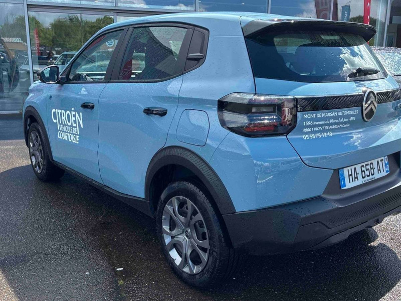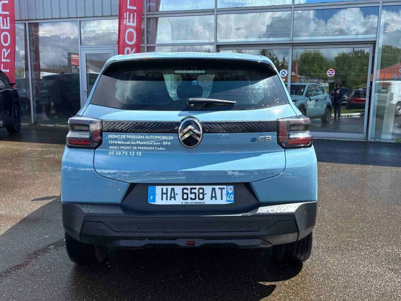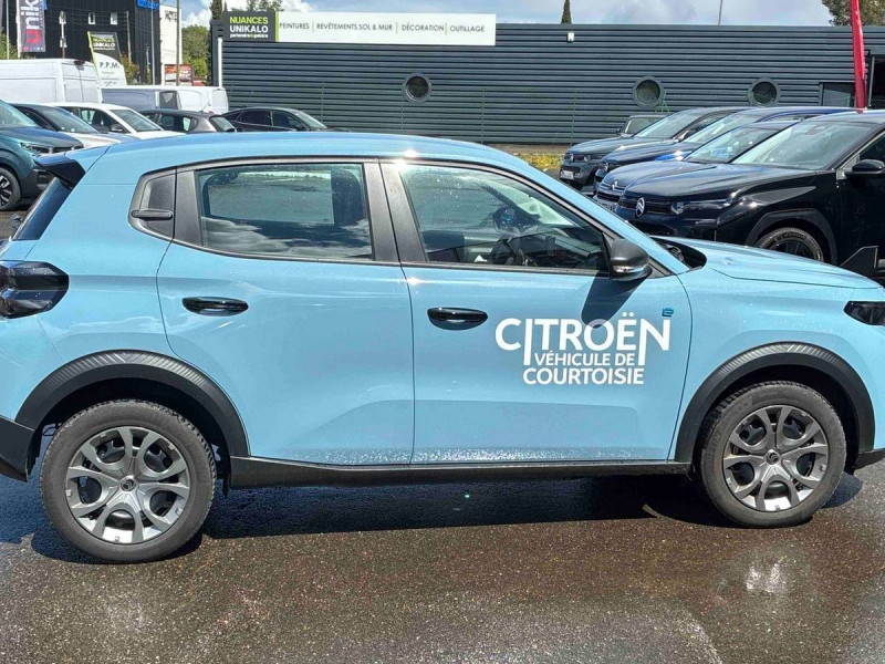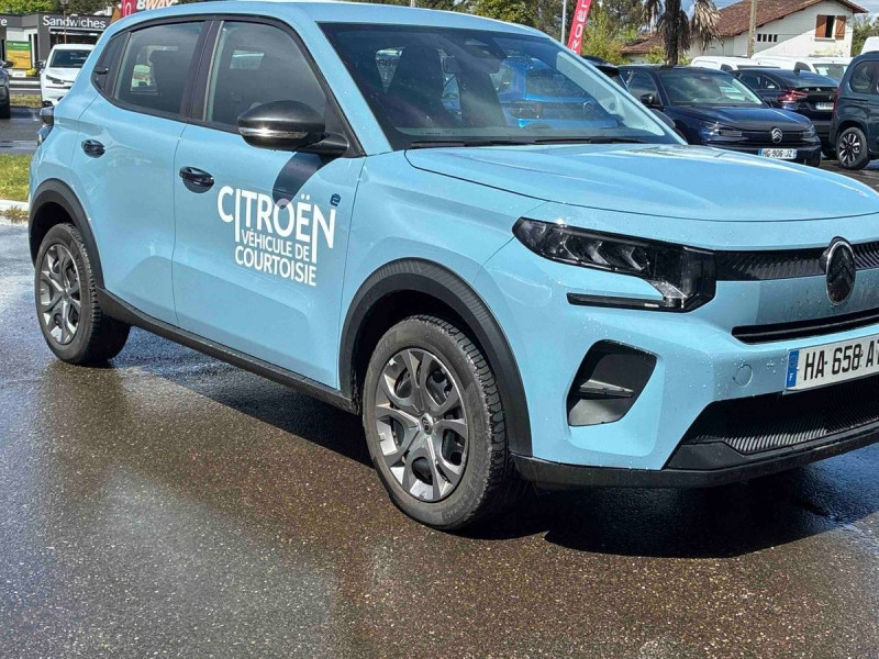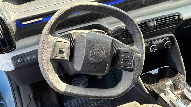 1 prise usb -c sur la planche de bord (charge rapide 3a) / abs, esp, tcs / afu, ref / allumage des feux de détresse en cas de forte décélération / ambiance you - appui-têtes av intégrés, - décors sur les panneaux de porte avant ultra blue, - décors sur la planche de bord ultra blue / application e-routes (planificateur de voyage intelligent) via pack connect plus gratuit pendant une période d'essai de 12 mois / avertisseur sonore piéton / boîte automatique 1 vitesse / boîtier télématique: appel d'urgence et citroën assistance les services connect one pendant une période de 10 ans / câble de charge mode 3 (wall box) pour prise de charge t2 / chargeur embarqué 7.4 kw monophasé / citroën head up display (affichage tête haute) - tft / clignotants impulsionnels / coques de rétroviseurs extérieurs noir mat / décors extérieurs noir mat (enjoliveurs de montant central et custode) / détection de sous-gonflage / eclairage d'accueil et d'accompagnement / elargisseurs d'ailes noir mat / enjoliveurs 16" pyrite / e-remote : contrôle de la charge (pour une période d'essai de 12 mois) / fixations isofix sur les deux places latérales ar avec 2 points d'encrage / garnissage tissu noir / tissu gris chiné / lève-vitres ar manuels / lève-vitres av électriques (descente séquentielle) / pack safety - active safety brake (freinage automatique d'urgence) - alerte active de franchissement involontaire de ligne - alerte attention conducteur - reconnaissance des panneaux de signalisation - régulateur-limiteur de vitesse / plafonnier av simple à lampe / poignées de portes extérieures noir mat / recharge rapide en courant continu de 100 kw (borne publique) / sécurité enfants mécanique / services connect plus pendant 12 mois / station d'accueil smartphone radio via smartphone (avec application my citroën play), 2 hp en rang 1, commande de la radio sur le volant / suspension citroën advanced comfort / témoin et alerte de non-bouclage des ceintures av et de débouclage av et ar / toit monoton / volant moussé