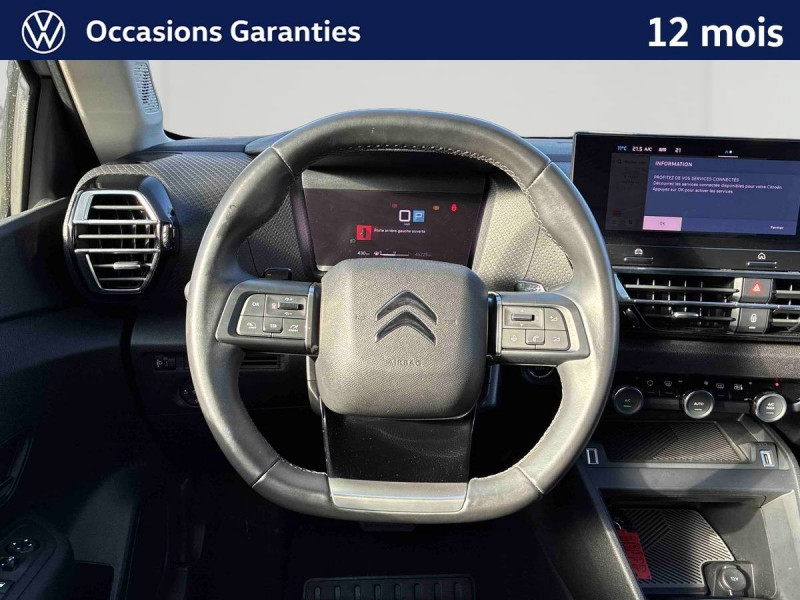 1 prise usb en rang 2 (type a) / 2 prises usb au rang 1 (1 type c + 1 type a) / abs avec ref, afu et esp / accès et démarrage mains libres proximity / aérateurs centraux en rang 2 / combiné numérique couleur avec rétro-éclairage / commutation automatique des feux de route / console centrale haute avec rangements et accoudoir / détection de sous-gonflage / eclairage d'accompagnement sous les rétroviseurs extérieurs / elargisseurs d'aile et bas de caisse noir mat / essuie-vitre av automatique (capteur de pluie) / frein de stationnement électrique automatique / garnissage textile effet cuir noir/tissu gris ambiance metropolitan grey + sièges advanced comfort / jantes alliage 18" aeroblade diamantées / jupe ar noir brilliant / kit de dépannage provisoire de pneumatiques / my citroën assist : citroën connect box avec pack sos et assistance inclus / my citroën drive plus: navigation sur tablette tactile 10'' comprend le système de navigation 3d tomtom, la reconnaissance vocale avec langage naturel, l'interface personnalisable, et durant 3 ans les services my citroën drive plus (inclut les services «zones de danger», «info trafic», «stations-service», «parkings, «météo» et «recherche locale») / my citroën play - mirror screen sans fils, compatible android auto et apple carplay, système audio numérique (dab) mp3 6 hp,tablette tactile 10" / pack color glossy silver / pack drive assist aide au stationnement av et latéral, commutation automatique des feux de route, régulateur de vitesse adaptatif avec fonction stop & go,système de surveillance d'angle mort / pack safety 2 / pack safety - active safety brake - alerte active de franchissement involontaire de ligne - alerte attention conducteur - alerte risque collision - coffee break alert - reconnaissance des panneaux de vitesse et recommandation - régulateur-limiteur de vitesse - témoin de non-bouclage des ceintures de sécurité conducteur et passagers / pack style jonc chromé sur les lécheurs de vitres latérales,vitres et lunette ar surteintées / plancher de coffre à 2 positions / poche aumônière au dos des sièges av / poignées de portes extérieures couleur caisse / prise 12 v en rang 1 / projecteurs antibrouillard led avec éclairage statique d'intersection / projecteurs led avec signature lumineuse en v / rétroviseur intérieur électrochrome / siège passager avec réglage lombaire / sièges advanced comfort / smart pad support citroen / suspension citroën advanced comfort / système audio numérique (dab) mp3 6 hp / tiroir de planche de bord / top rear vision (caméra de recul avec visualisation 180° sur tablette) / volant cuir pleine fleur