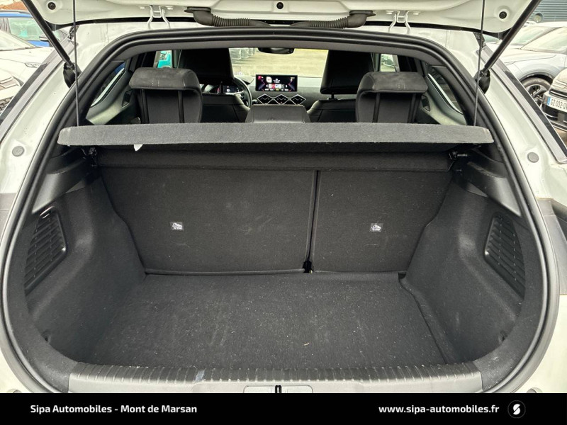 abs avec répartiteur électronique de freinage (ref) et aide au freinage d'urgence (afu) / airbags frontaux aux places av avec désactivation par clé de l'airbag passager / airbags latéraux de type "thorax" aux places av et ar / alerte de survitesse / allumage automatique des feux de détresse en cas de forte décélération / antenne radio invisible / banquette ar 2/3 - 1/3 avec 3 appuie-tête / centre de roue noir / clignotants impulsionnels 3 coups / combiné numérique / contrôle de traction intelligent / contrôle dynamique de stabilité (esp) avec antipatinage des roues (asr) / crochet d'arrimage dans le coffre / démarrage mains-libres avec bouton de démarrage à pulsation / détection de sous-gonflage / double canule d'échappement chromée / ds wings chromées / eclairage d'accompagnement / eclairage d'accueil automatique / eclairage de boîte à gants, d'accoudoir central av et de coffre à led / eclaireur de coffre / entrées d'air pilotées / essuie-vitre ar avec intermittence indexée à la marche ar / essuie-vitre av à déclenchement et cadencement automatiques / facade centrale a commandes sensitives / feux stop à led (3e feu) / filtre à charbon actif / fixations isofix à la place passager av et aux places latérales ar / freinage d'urgence automatique jusqu'à 85 km/h / frein de stationnement électrique automatique / grille de calandre noir mat / guide utilisateur numérique / indicateur de rapports engagés / intérieur tissu perruzi bronze et pavillon clair / jonc sur volet noir brillant signé crossback et paupières noir brillant avec logo ds / lève-vitres av et ar électriques et séquentiels, avec antipincement sur la vitre conducteur / mirror screen / navigation avec mirror screen et radio numérique / pare-brise teinté et acoustique / pieds de rétroviseurs extérieurs couleur carrosserie / poignées de maintien aux places av / poignées de portes affleurantes / poignées de portes affleurantes ouverture à l'approche / poignées d'ouverture de portes intérieures chromées / porte-gobelets à l' av / portières avec lécheurs de vitres invisibles / prise usb data à l'av / reconnaissance vocale / réhausse manuelle de siège conducteur / rehausse manuelle du siège passager / rétroviseur intérieur simple / services pack navigation 3 ans inclus à l'achat du véhicule: information trafic en temps réel grâce au service tomtom traffic, conditions météorologiques, prix des carburants, disponibilité et tarifs des parkings, zones de danger / sièges av réglables en longueur / sos & assistance / système audio sur tablette tactile 10,3" hd à 8 hp avec prise usb et bluetooth / système sonore polyphonique à 8 hp / témoin et alerte sonore de non-bouclage des ceintures de sécurité av/ar / verrouillage automatique des portes en roulant / verrou sur porte conducteur / zone de danger